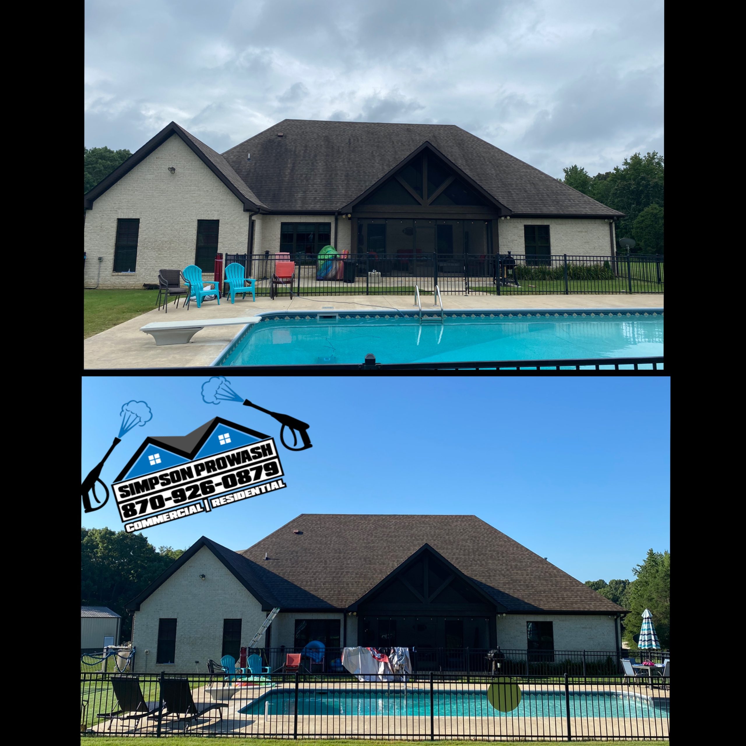 Our residential services include power washing of driveways, decks, patios, walkways, fences, siding, and other outdoor areas. We can also power wash your commercial buildings and agricultural equipment, giving them a fresh, clean look. Our team of experienced power washers is well-trained and knowledgeable in the latest power washing technology and techniques. We use only the best cleaning solutions and equipment to ensure the highest quality results. Our goal is to make sure your property looks its best by removing dirt, grime, and mildew from the exterior of your home or business.No matter what your power washing needs, Simpson ProWash has you covered.